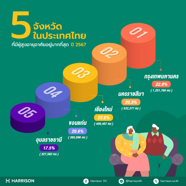 5 จังหวัดในประเทศไทย ที่มีผู้สูงอายุอยู่มากที่สุด ปี 2567