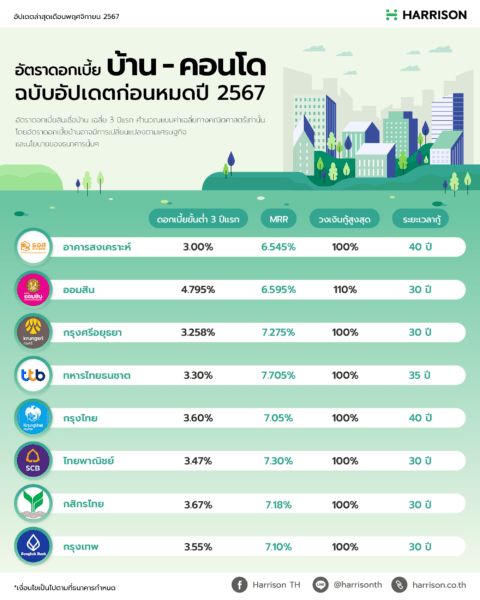 อัตราดอกเบี้ยบ้าน-คอนโด ฉบับอพเดทก่อนหมดปี 2567