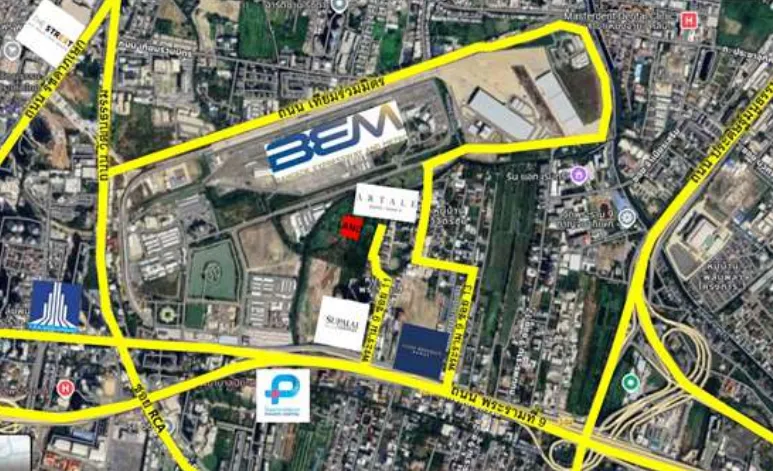 ทรัพย์สินที่จะประมูล สามารถซื้อที่ดินเพิ่มเติมเพื่อสร้างและพัฒนาโครงการได้ โดยตั้งอยู่ห่างจากซอยพระราม 9 ซอย 11 (ซอยแย้มนวม) ระยะประมาณ 80 เมตร และห่างจากถนนพระราม 9 ระยะประมาณ 500 เมตร แขวงบางกะปิ เขตห้วยขวาง กรุงเทพมหานคร